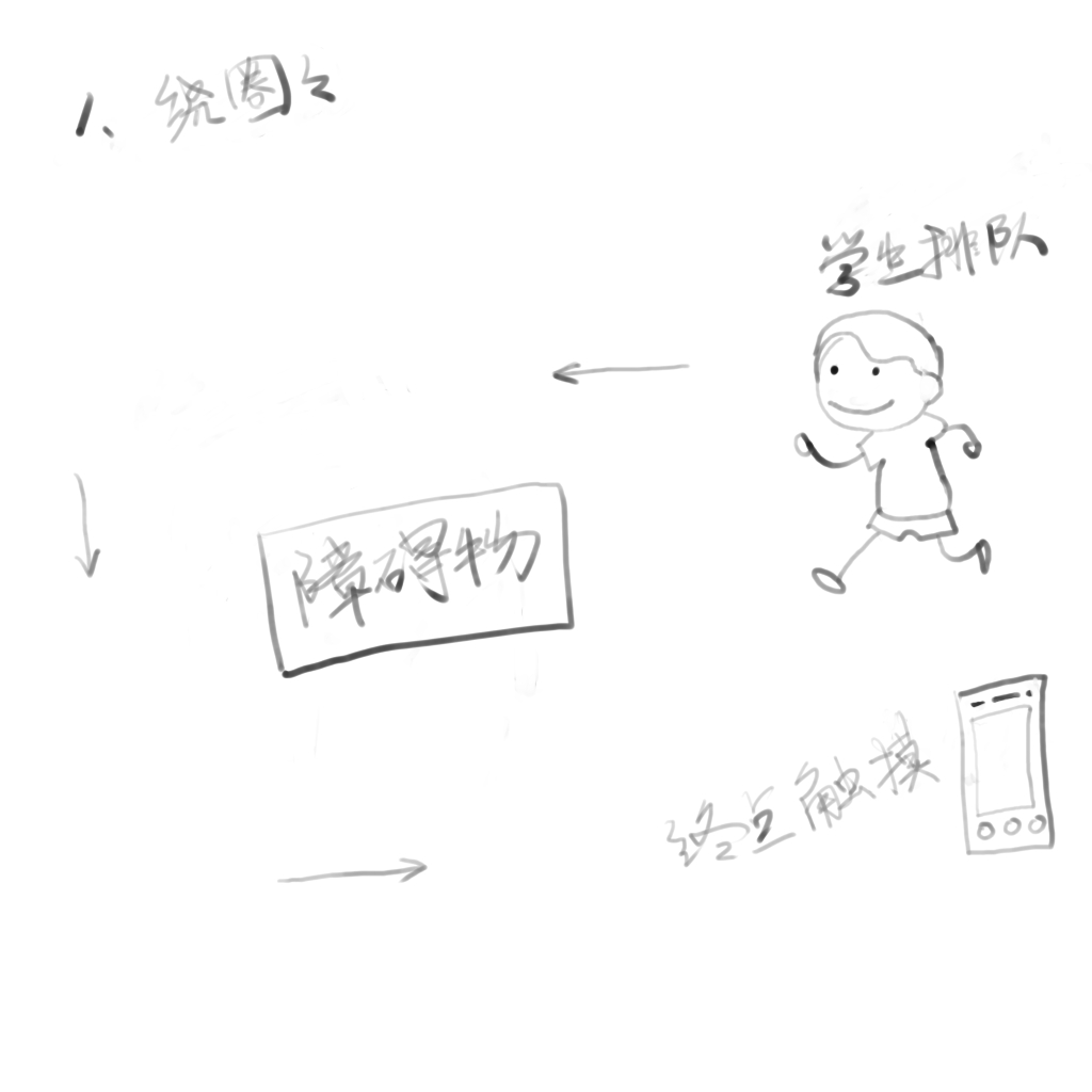 3.排队的学生依次绕圈圈,学生触摸手机作为本次绕圈圈的结束与下个学生入场的信号。
