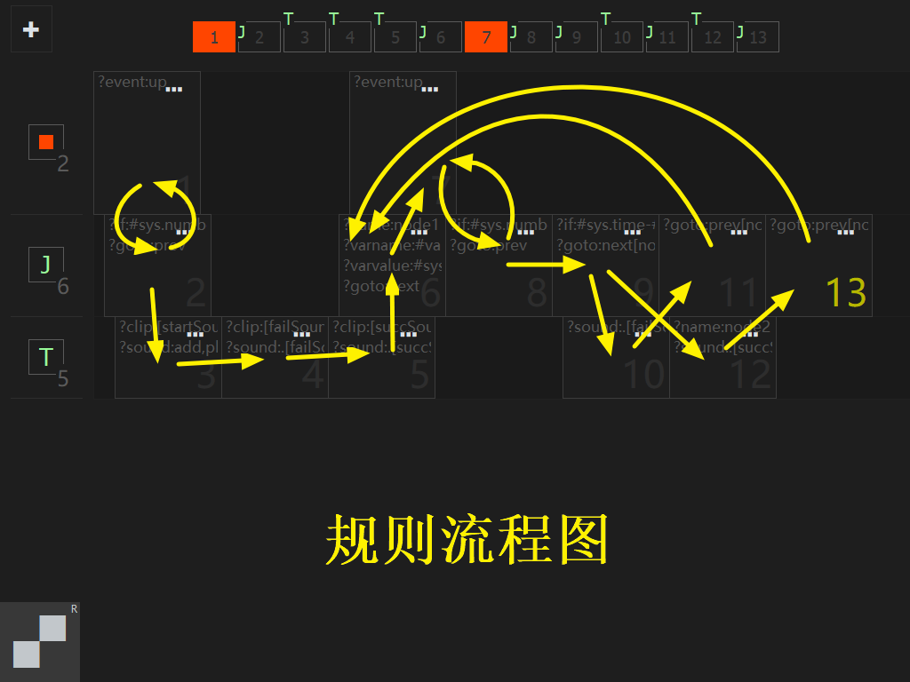 2. 如果系统数字变量为零,表示上一节点的按键事件不匹配,那么跳转回上一节点,否则跳转到下一节点。