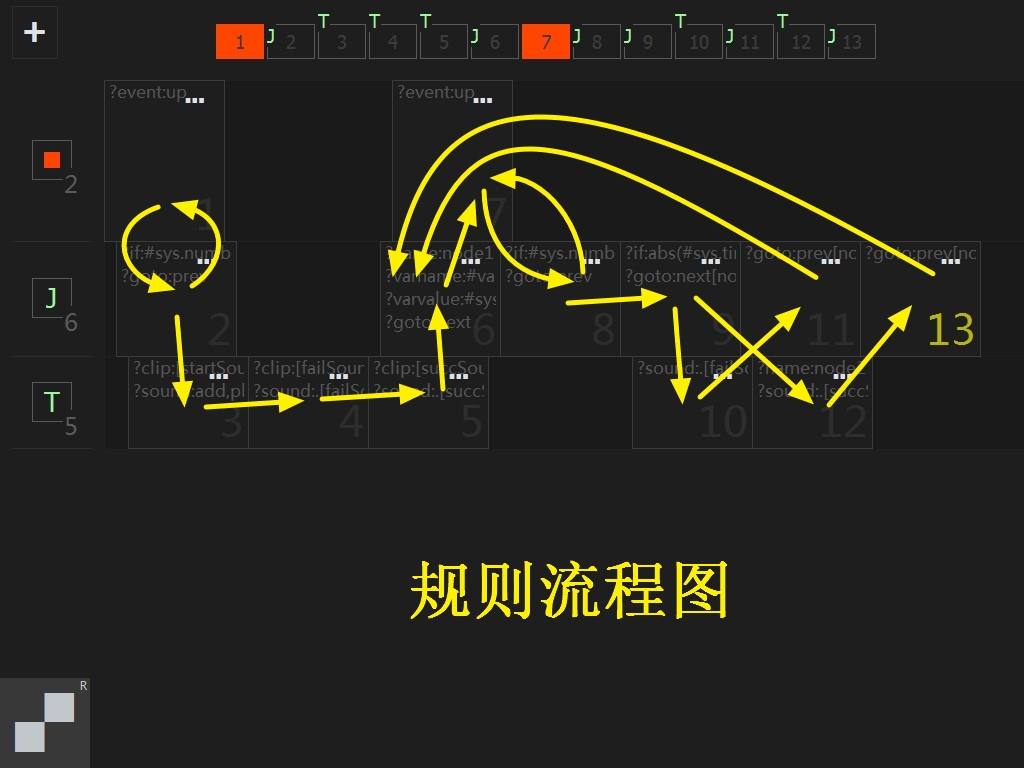 2. 如果系统数字变量为零,表示上一节点的按键事件不匹配,那么跳转回上一节点,否则跳转到下一节点。